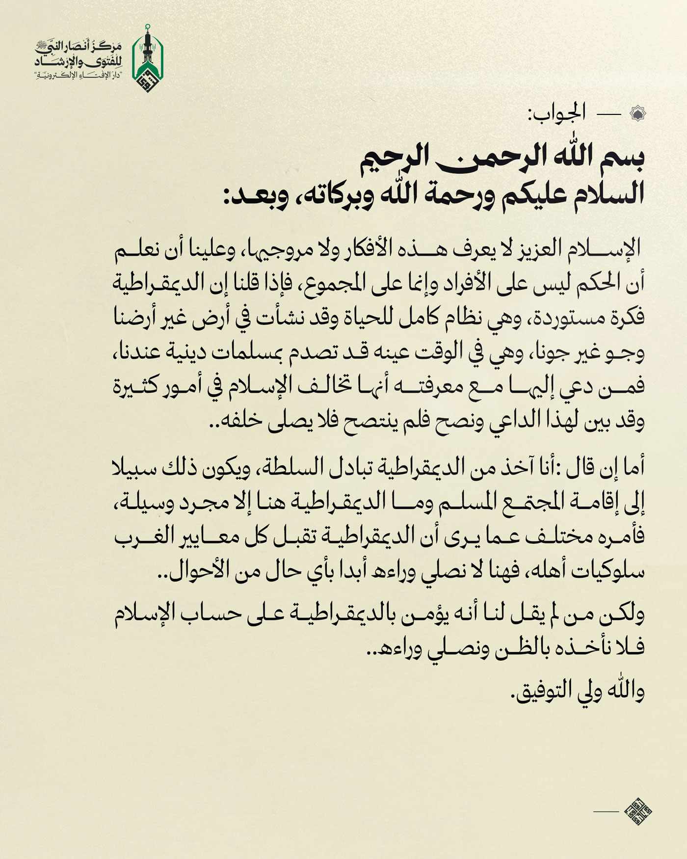 هل يجوز الصلاة الجماعة وراء شخص حزبي يصدق نظام الديمقراطية و والبرالية